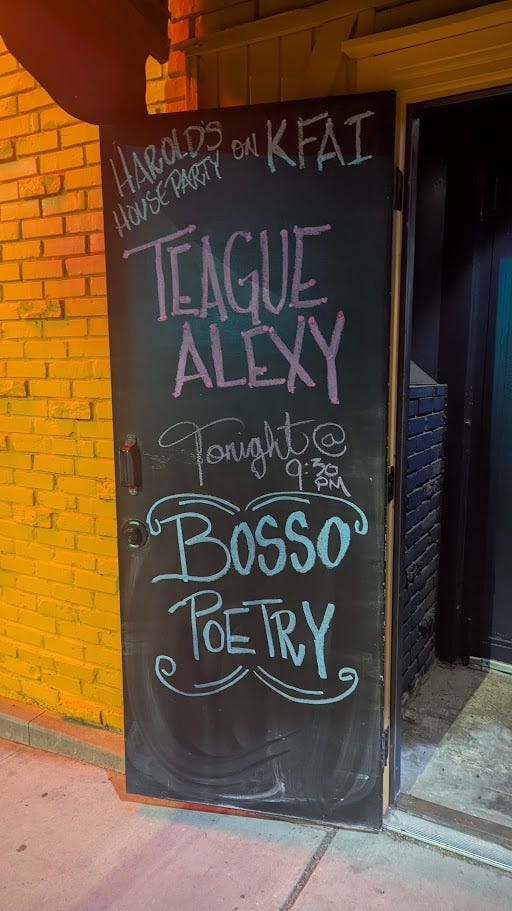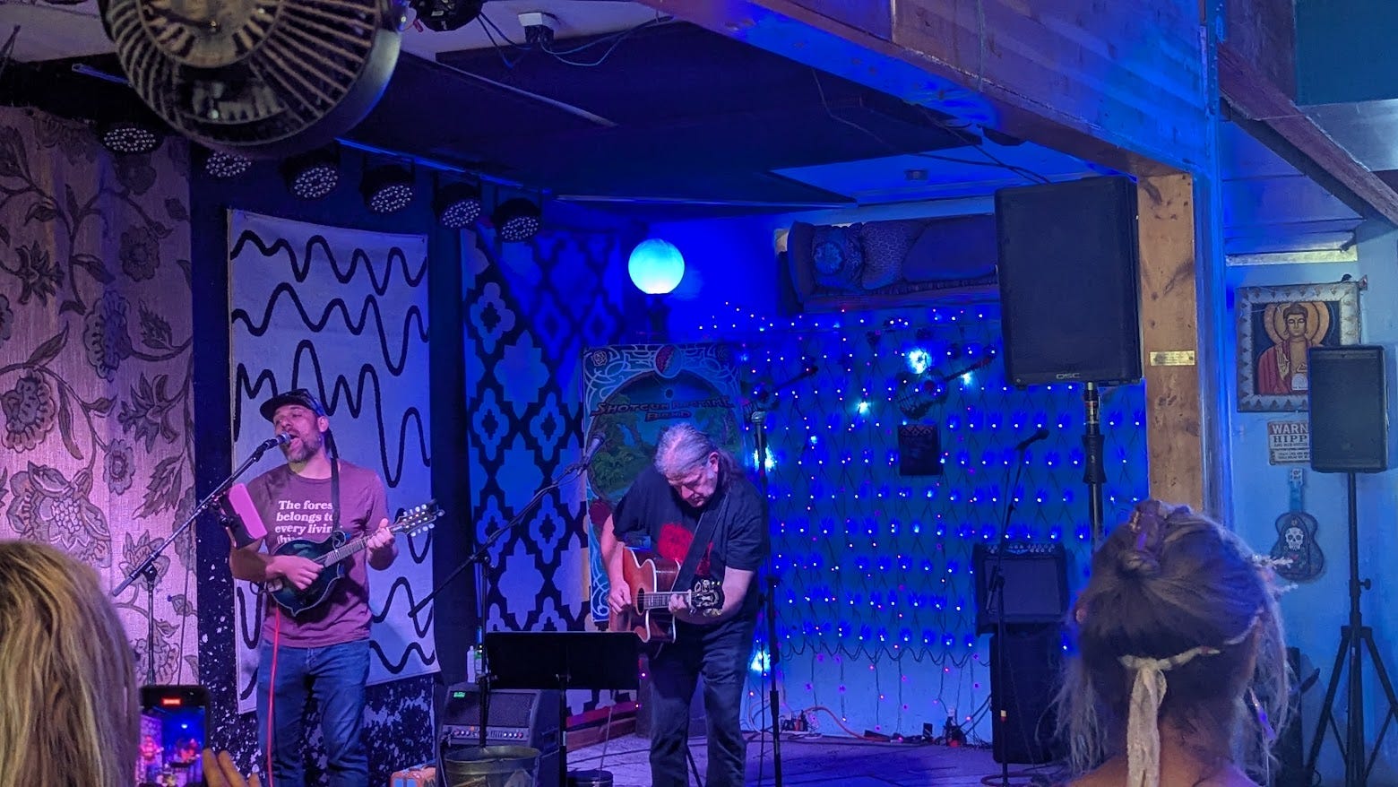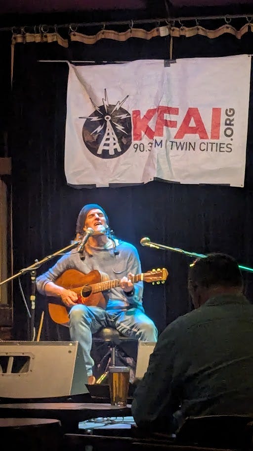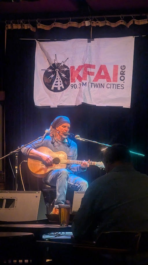 Wisconsinite Adam Greuel of Horseshoes and Hand Grenades is also in jam supergroup The High Hawks with Vince Herman of Leftover Salmon and Tim Carbone of Railroad Earth. For this low key gig at the NE brewery, Greuel invited locals Maxaphone and Pert Near fiddle’s player, Chris Forsberg, up for a few. Both rocked some nice solos. I appreciated the twang of the George Strait and Patti Loveless songs and a couple from John Prine. Setlist included: